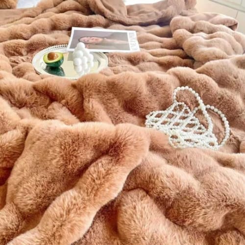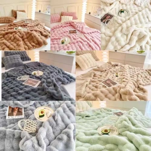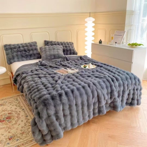 Introducing our premium Solid Color Ruched Bubble Faux Fur Blanket, a perfect blend of luxury