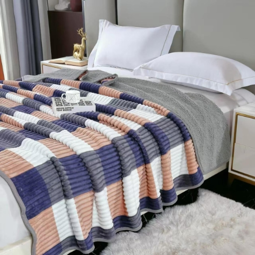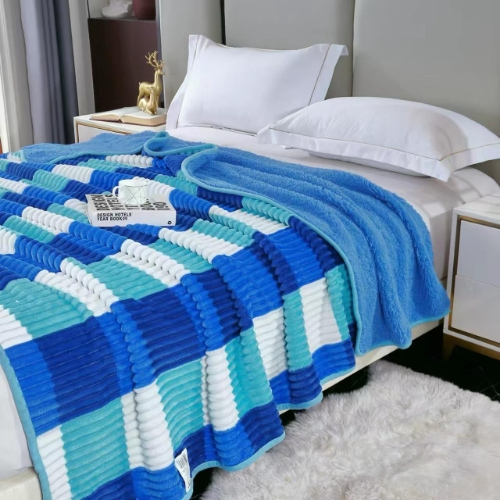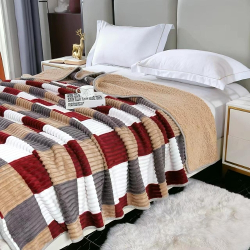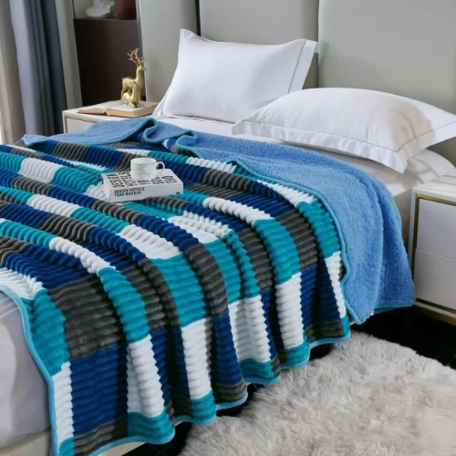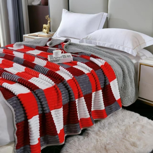 A premium double-sided blanket featuring a stylish check design printed fleece side and ultra-soft Sherpa backing for ultimate warmth and comfort. Available in standard sizes (50"x60" to 80"x90") with customizable GSM (320-500), colors, and designs. OEKO-TEX® certified, anti-pilling, and machine-washable. Ideal for bulk wholesale, hotels, and retailers. Low MOQ, OEM/ODM, and private packaging options supported.