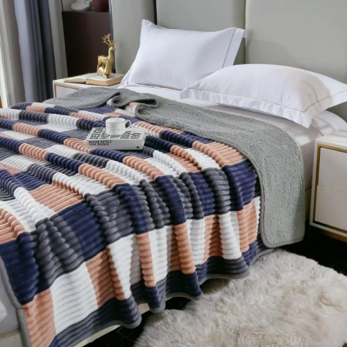 Sherpa VS Fleece Blanket with Printed Stripe Pattern