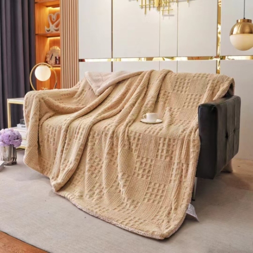 Enhance your product lineup with our Jacquard Waffle Sherpa Fleece Blanket Throw, a luxurious double-layered blanket designed for ultimate comfort and style.